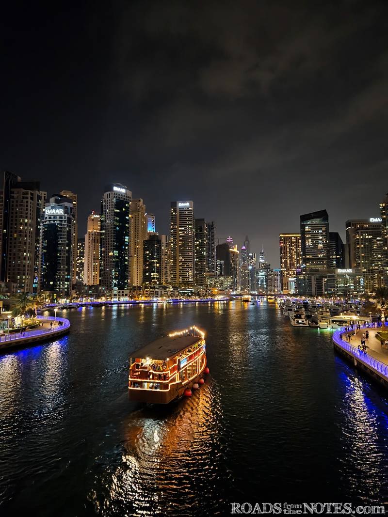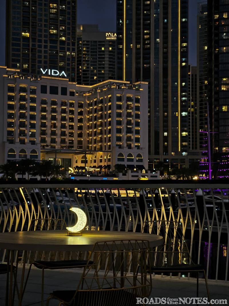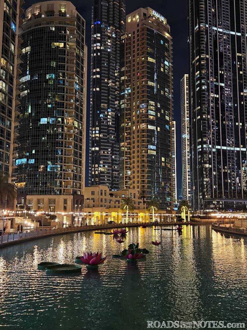 След вечерята се разходихме още малко, просто за да попием още от магията на вечерен Дубай – светлините, отраженията по водата, високите сгради и усещането, че се намираш на някаква друга планета.