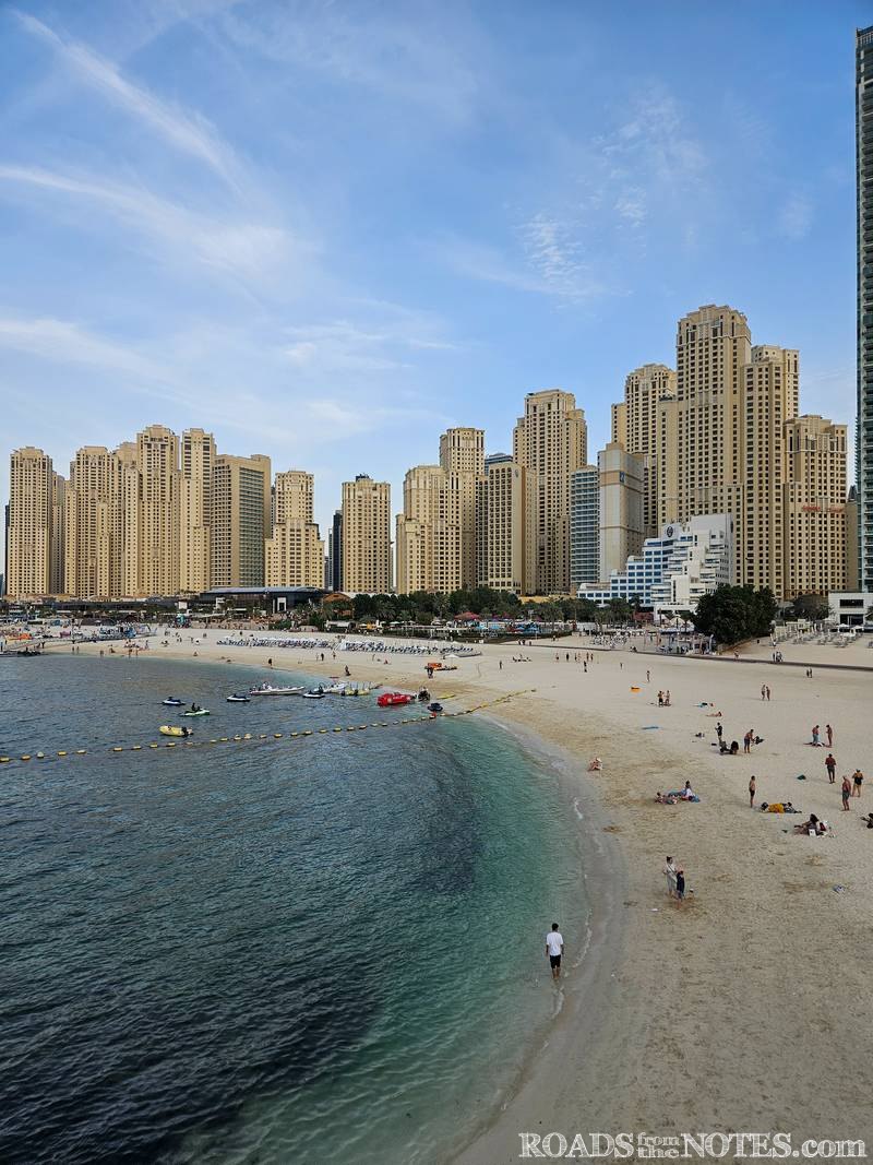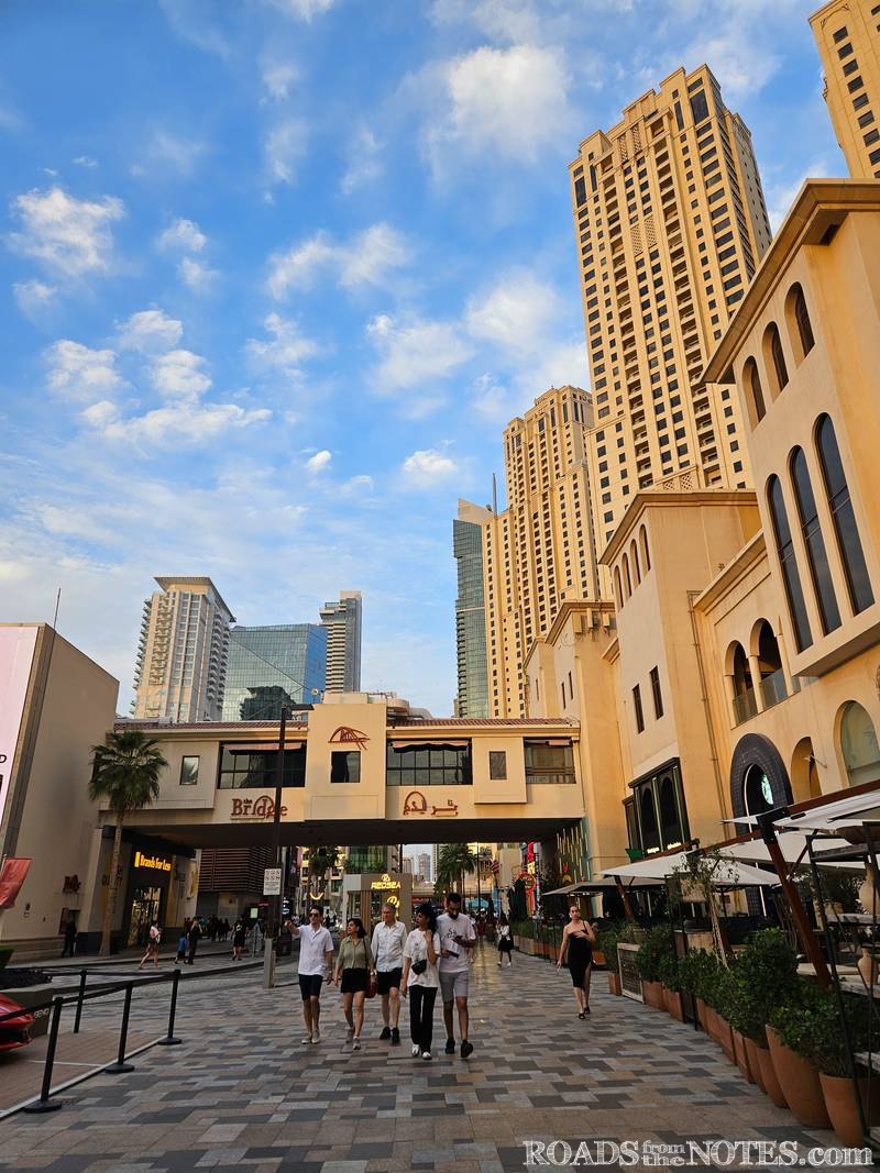 Оттам тръгнахме пеша и се насладихме на плажа JBR (Jumeirah Beach Residence), където успяхме да хванем зашеметяващ залез над морето. Вечерната атмосфера беше като сцена от филм – навсякъде светлини, модерни небостъргачи, приятна музика от заведенията и спокоен бриз от водата.