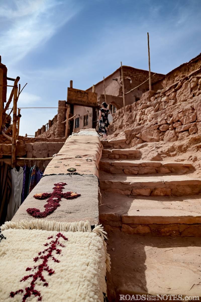 От тази точка, пътят започва да се спуска на юг по планинските склонове, покрай други реки и селца. Пейзажът подготвя сетивата ни за Аит Бенхаду – древният ксар, издигащ се като мираж сред пустинния пейзаж.