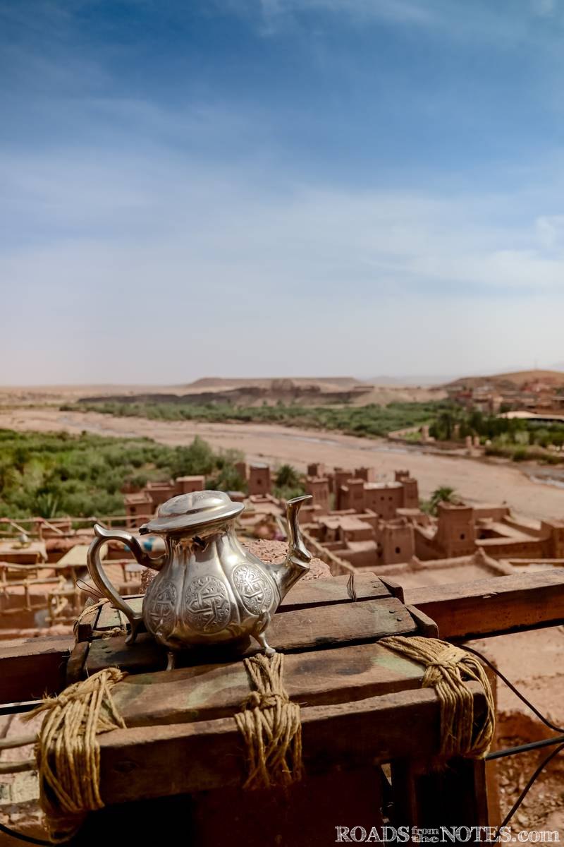 Тя е още по приятна с чаша освежаваща напитка в кафене La Table de la Kasbah, точно под крепостта.