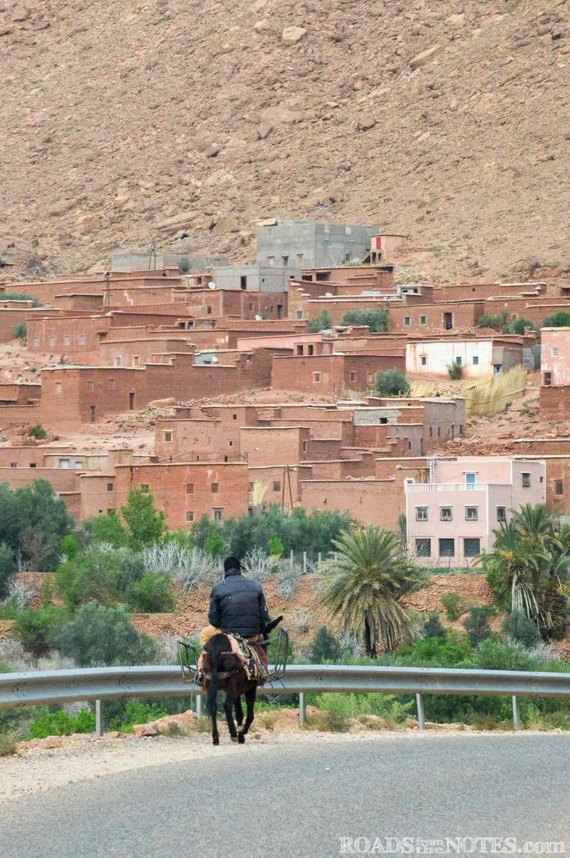 Пътуването с кола през района на Телует (Telouet) е като бавно потапяне в друго измерение – свят, в който времето тече по свои правила. Малките берберски села, изградени от кал и камък, със своите земни цветове са естествена част от пейзажа. Те са застинали така от векове. Къщите, укрепените домове касба и хамбарите следват една и съща вековна логика – простота, устойчивост и пълно сливане с природата.